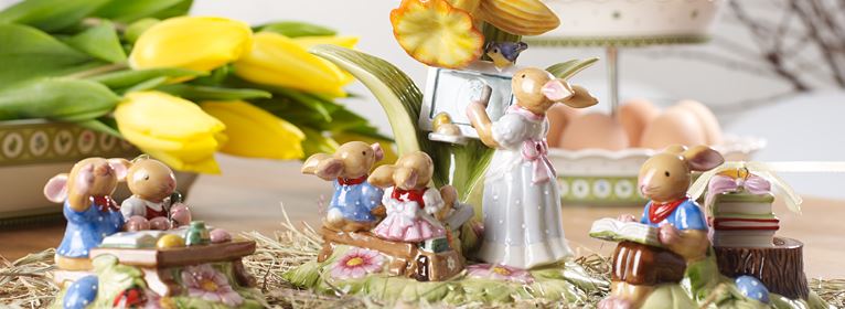 Net als met Kerst kun je ook met Pasen je huis versieren met mooie porseleinen paasfiguren. Villeroy & Boch heeft echt hele mooie verfijnde figuurtjes die prachtig zijn als gewoon decoratie in huis of natuurlijk op de paastafel bij het paasontbijt! Bekijk anders de Villeroy en Boch Bunny Family, de Easter Decorations, Modern Spring en de Spring Decorations.