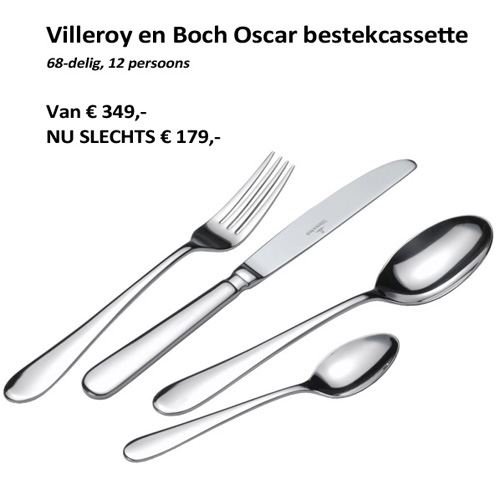 Op zoek naar Villeroy & Boch bestek? Dan is dit een superaanbieding. De Villeroy en Boch bestekcassette Oscar van € 349,- nu voor slechts € 179,-. Een 68-delig bestekset geschikt voor 12 personen.