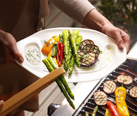 Ideaal is dit barbecuebord speciaal voor groente. Het bord heeft een extra vakjes waar eventueel overtollig vet of groentevocht in kan lopen en een extra vak voor dips en sauzen.