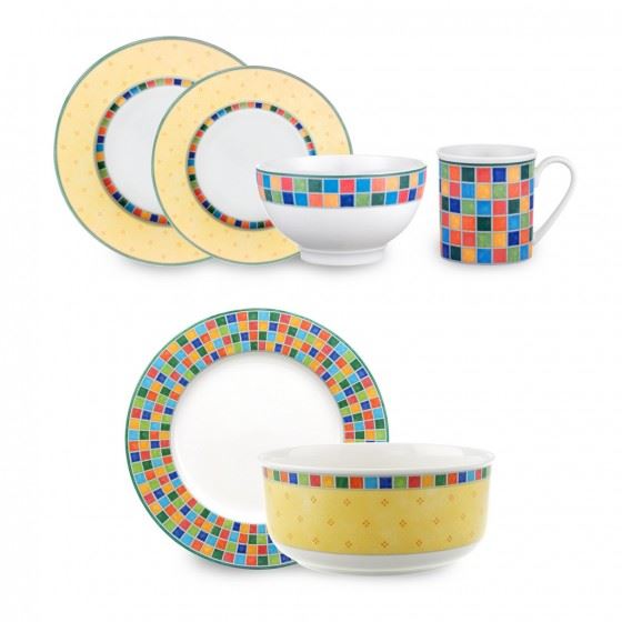 De kleurrijke vierkanten die zo kenmerkend zijn voor Twist Alea verschillen qua design en kleur wel onderling. Er zijn drie collecties binnen Twist Alea te onderscheiden: Verde, Caro en Limone die onderling perfect combineren en ontelbare variaties mogelijk maken voor een prachtig gedekte tafel.Tip: mix en match deze drie collecties onderling of mix Alea met het Twist White servies voor een stijlvolle combinatie met extra kleuraccenten.