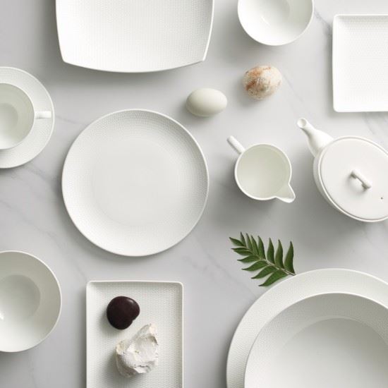 Zoals gezegd is de Gio collectie een eigentijds assortiment van stijlvol, wit, Fine Bone China servies dat goed past in een toch wel enigszins modern huishouden. Het fraaie reliëf geeft het servies een geheel eigen look & feel. De collectie bestaat uit o.a. borden, kopjes & schotels, een theepot, suikerbowl & melkkannetje, een slaschaal, soepkommen maar ook rechthoekige en vierkante vormen waaronder de ‘Sculptural schaal’. De afwisseling tussen ronde, vierkante en rechthoekige vormen maakt dit servies nét even anders.